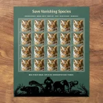 The Save Vanishing Species semi-postal stamp sold for 11 more than the first-class postage rate, with additional funds supporting global conservation through the US Fish and Wildlife Service and the Wildlife Without Borders program.