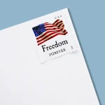One of the most iconic and beloved USPS Forever Stamps issues. This quartet of Stamps features a bright U.S. flag against a white background. A single word appears on each of the four Stamps in large letters: Freedom, Liberty, Equality, and Justice. The black typeface recalls the look of Colonial-era printing.