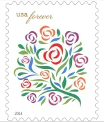 As with the “Yes I Do” Heart of Roses stamp, the “Where Dreams Blossom” Wedding Bouquet stamp was designed by Ethel Kessler using an illustration by Michael Osborne. This stylized bouquet stamp was issued for use on the save-the-date notices, response cards, and thank-you notes.