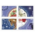 The U.S. Postal Service celebrate the Holiday season tomorrow with four new Forever stamps featuring images that illustrate the themes of four beloved Christmas carols: “Jingle Bells,” “Deck the Halls,” “Silent Night” and “Jolly Old Saint Nicholas.”