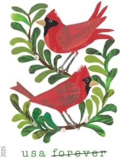 Forever Stamps 2025 Holiday Cheer – Cardinals, Wreath, Holly & Poinsettia Designs, First-Class Postage